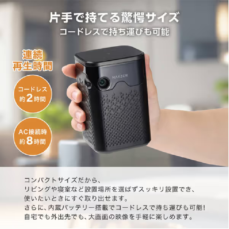 コンパクト設計と多機能を兼ね備えたプロジェクター。