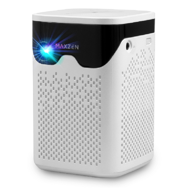 MAXZEN MP-D12HC-WH プロジェクター コンパクト コードレス 内蔵バッテリー Android11搭載 Netflix対応 ミラーリング 100インチ投影 ブラックリング 100インチ投影 ホワイト