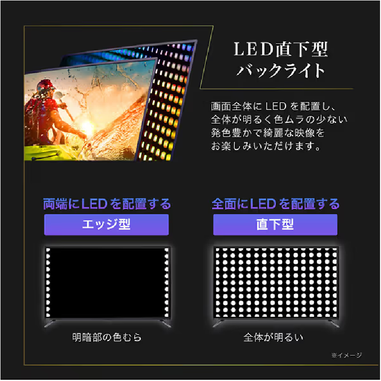 さらに、LED直下型バックライトで明るくムラの少ない映像をお届けします。