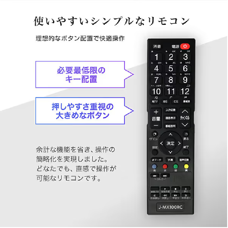 リモコンはシンプルで直感的な操作が可能。どなたでも安心してお使いいただけます。