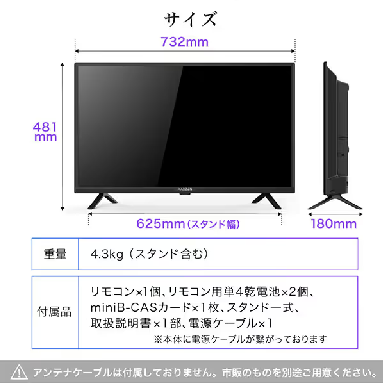 MAXZEN J32CH06 小型テレビ 32インチ VAパネル 高輝度 3000:1コントラスト Wチューナー 外付けHDD録画対応 ゲームモード 壁掛け対応
