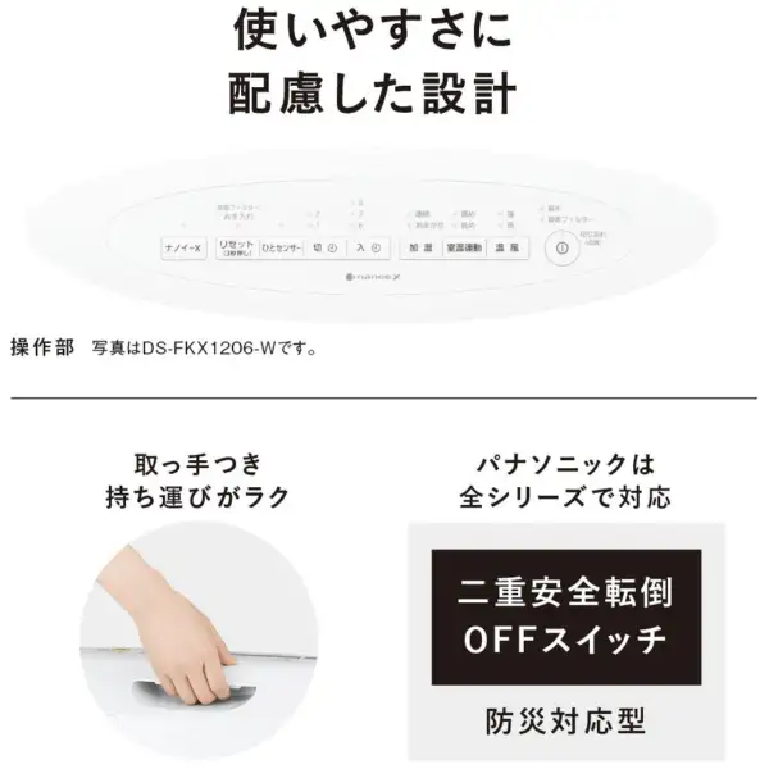 パナソニック DS-FKX1206 季節家電 加湿機能付きセラミックファンヒーター ナノイーX 空気清浄 温風 人感センサー 室温センサー グレー