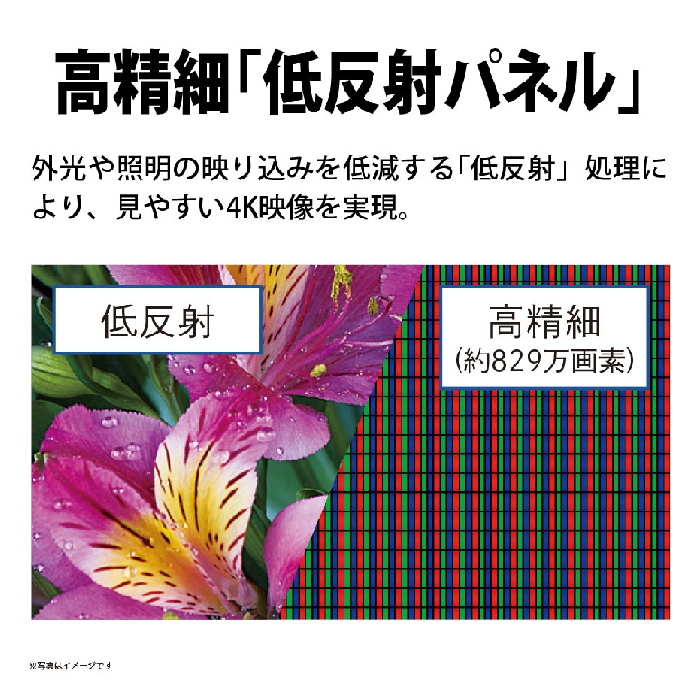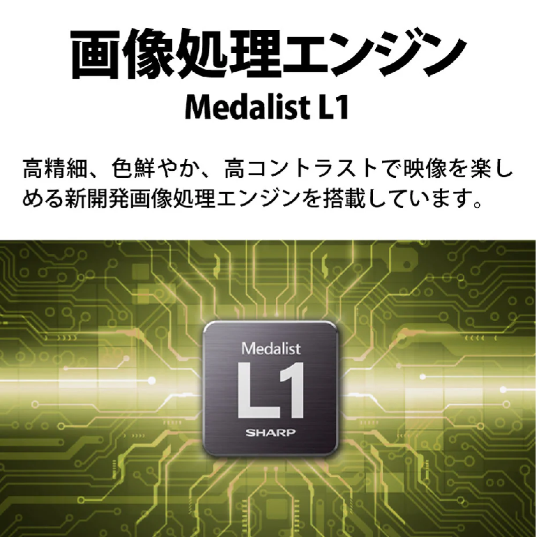 リビングでも寝室でも見やすい低反射パネルと、新開発エンジンMedalist L1で、細部まで鮮やかな4K映像を実現。