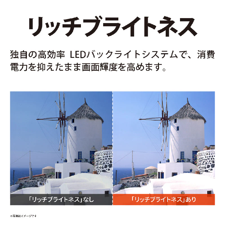 画面の明るさを控えめにし、消費電力を抑制。長時間視聴やながら見にも◎。