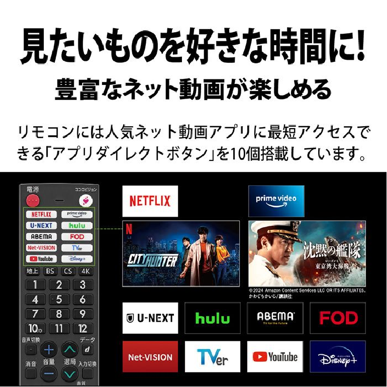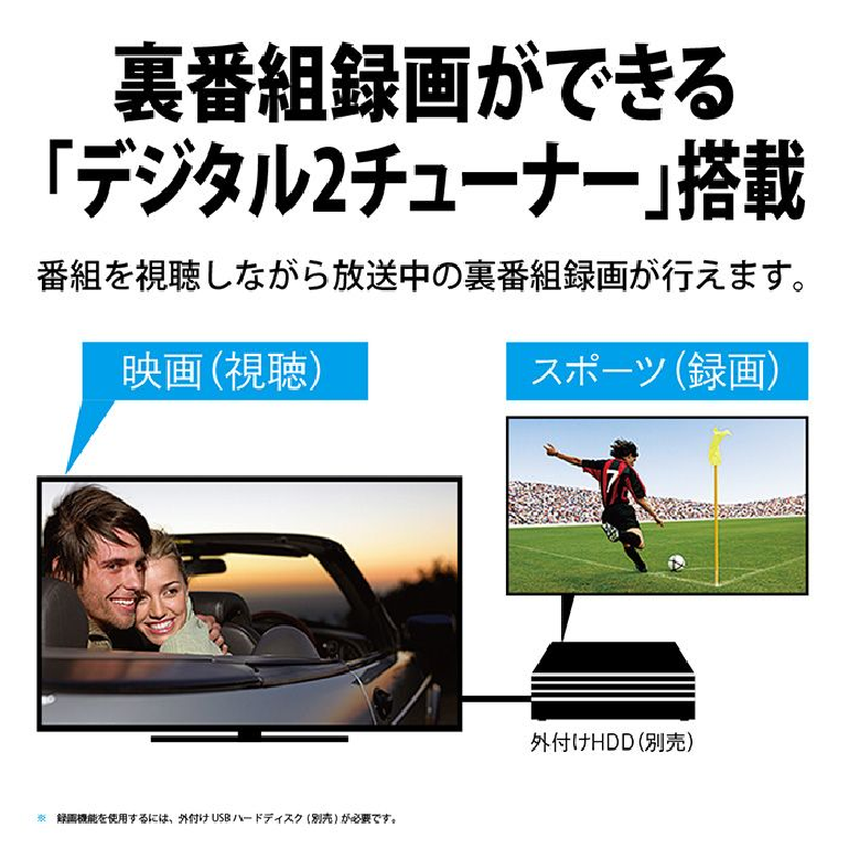 映画やスポーツ、配信コンテンツまで、画も音もワンランク上の没入感を50V型の大画面で楽しめます。