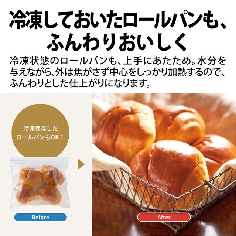 過熱水蒸気がパンの内側までしっかり加熱するので、冷凍パンでも外はカリッと中はふっくら。