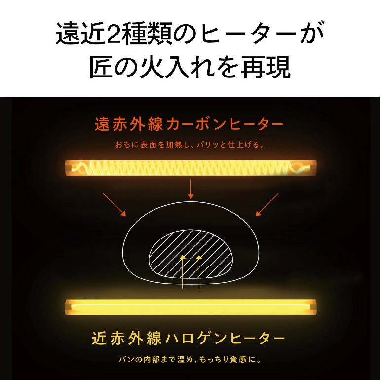 トースター内部には、遠近2種類のヒーターと秒単位の温度センサーを搭載。