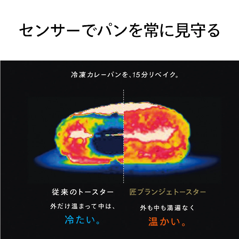 パンの厚みや冷凍状態を自動で判断し、外は香ばしく中はもっちりとした理想の食感に。