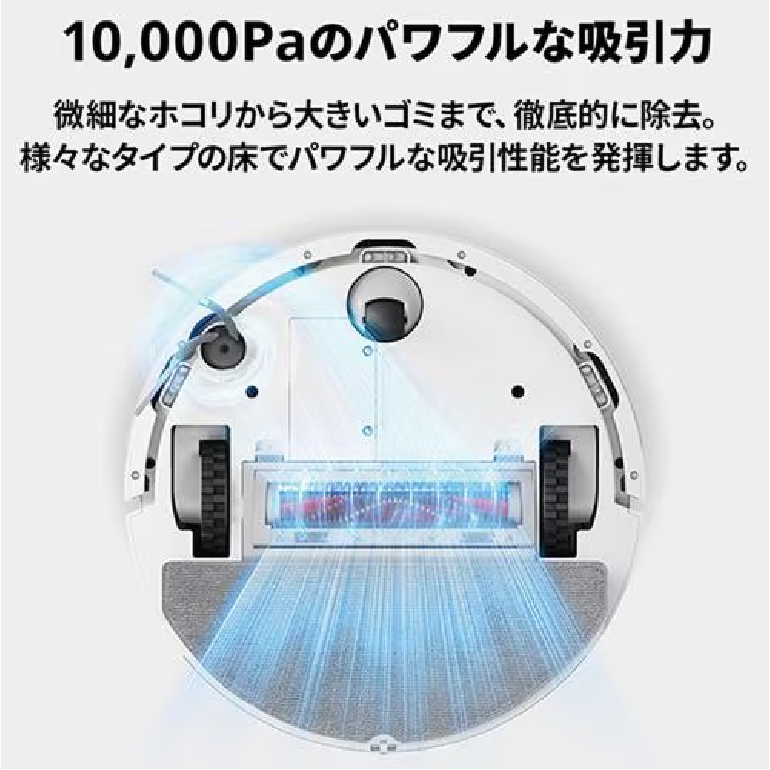 吸引力・水拭き水量・掃除エリアを細かく指定でき、掃除ルートのリアルタイム表示や履歴の確認も可能です。