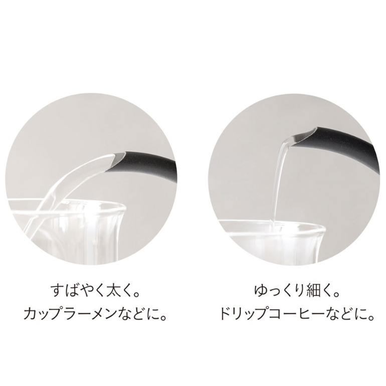 グリップ感のある取っ手と細い注ぎ口で、コーヒーや紅茶のハンドドリップにも最適。