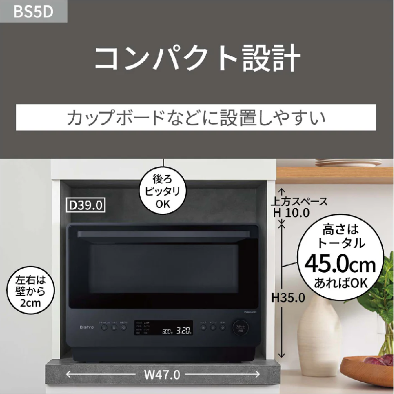 パナソニック ビストロ NE-BS5D-W オーブン電子レンジ 定番グリルボタン スピード機能 温度調整 フライあたため機能 コンパクト設計