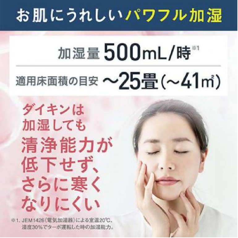 加湿しながらでも清浄能力が低下しにくく、寒くなりにくいのがダイキン加湿の特長。