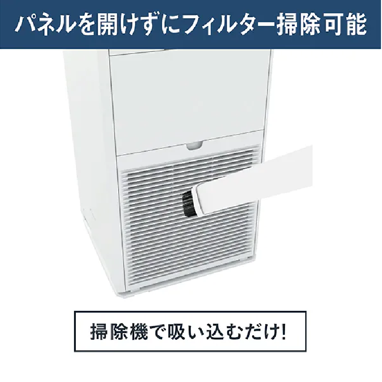 パネルを開けずに掃除機で吸うだけの簡単お手入れ。