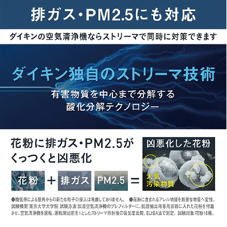 ダイキン独自のストリーマ技術が、有害物質にダブルアタック。