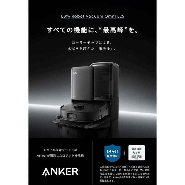 ANKER Eufy Robot Vacuum Omni E25 T2353511 自動掃除機 20000Pa強力吸引 ローラーモップ床洗浄 AI障害物回避 全自動クリーニングステーション ブラック