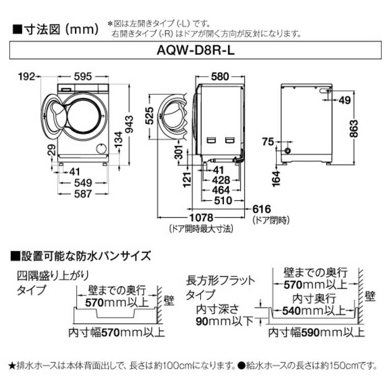 60cm角の防水パンに対応しているため引っ越しや住み替え、タテ型洗濯機からの買い替えにもスムーズに対応します。