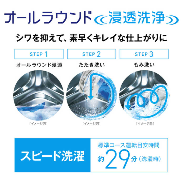 洗濯ムラを防ぎ、衣類を傷めにくく毎日の洗濯を安定した仕上がりに導きます。