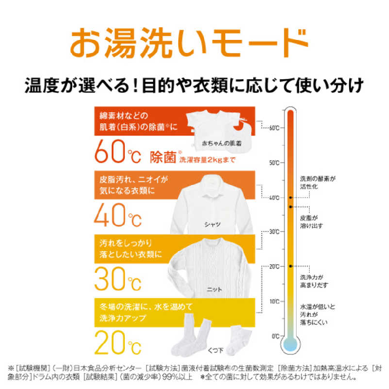 衣類に合わせて選べる「お湯洗いモード」