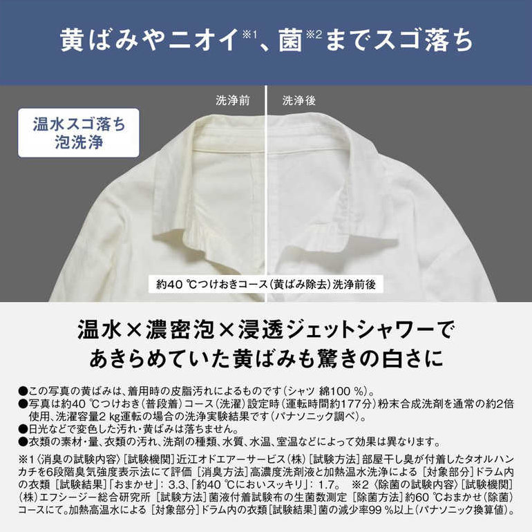 黄ばみ・ニオイ・菌まで落とす「温水泡洗浄」