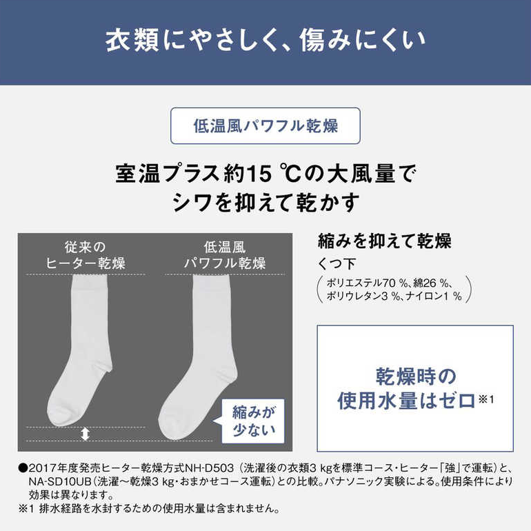 衣類にやさしく仕上げるヒーター乾燥
