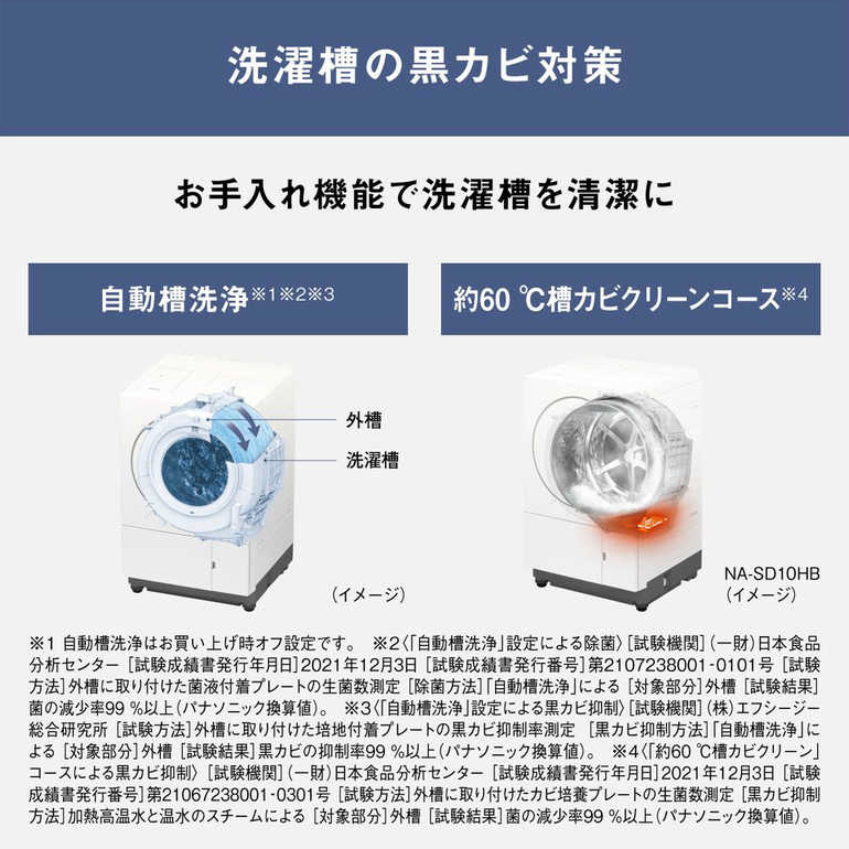 パナソニック NA-SD10HBL-W ドラム式洗濯乾燥機 洗濯10kg 乾燥5kg コンパクト 左開き 省スペース設計 ヒーター乾燥 温水泡洗浄 液体洗剤自動投入 ダウンジャケットコース マットホワイト