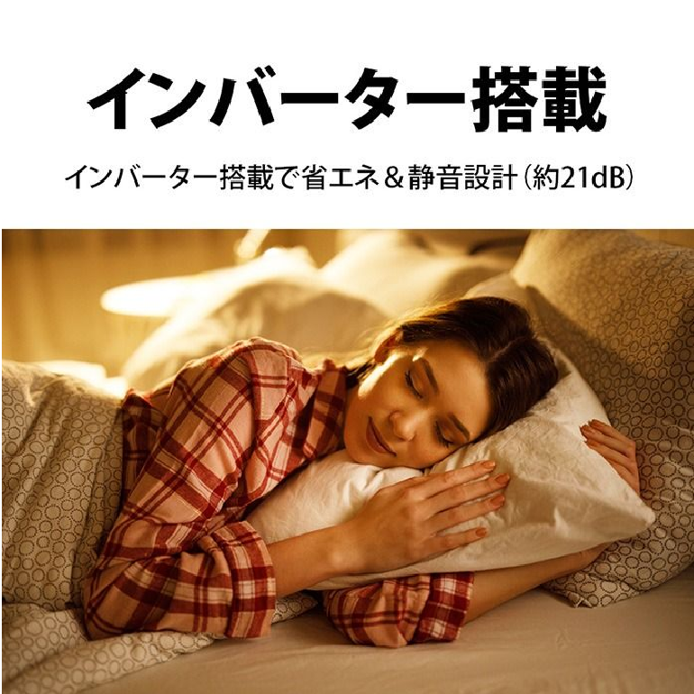 運転音は約21dBと静かで、ワンルームや寝室近くへの設置にもおすすめ。