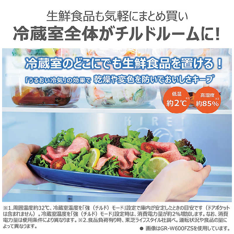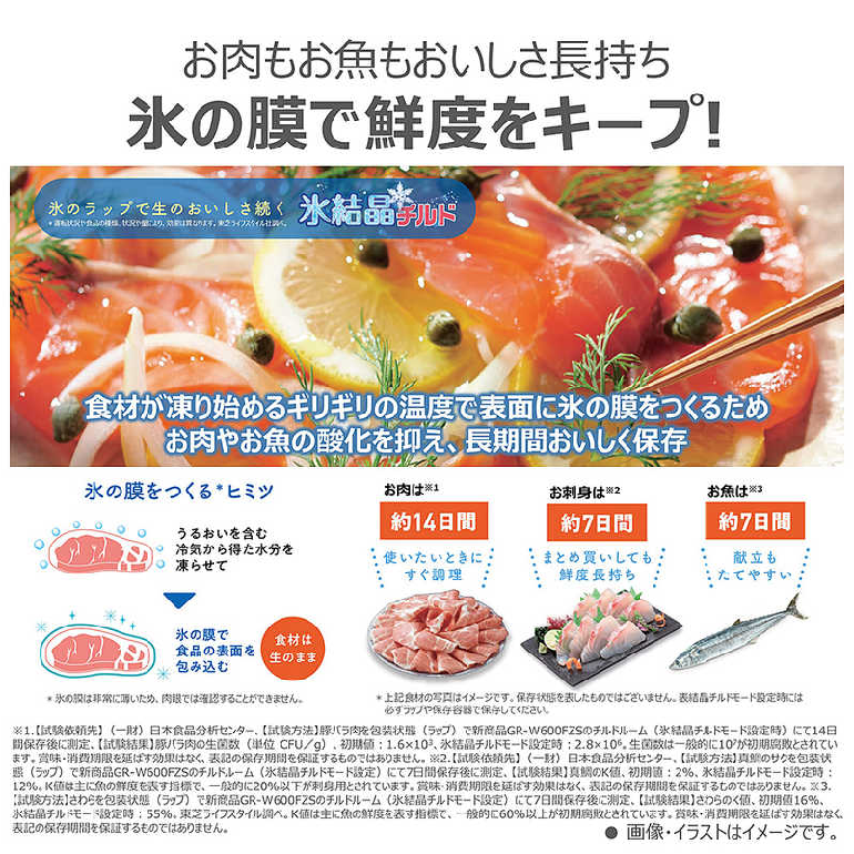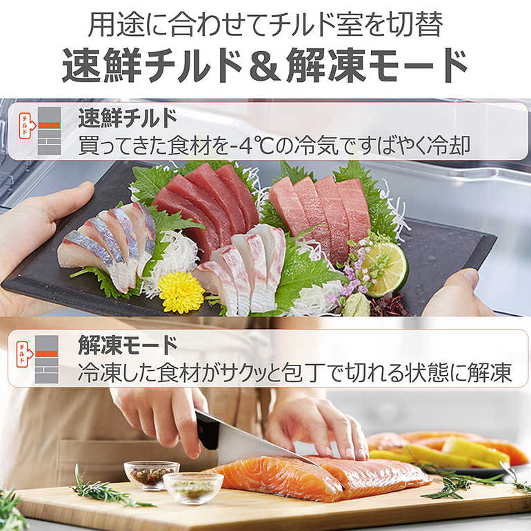 冷凍室には「おいしさ持続上質冷凍」を採用。