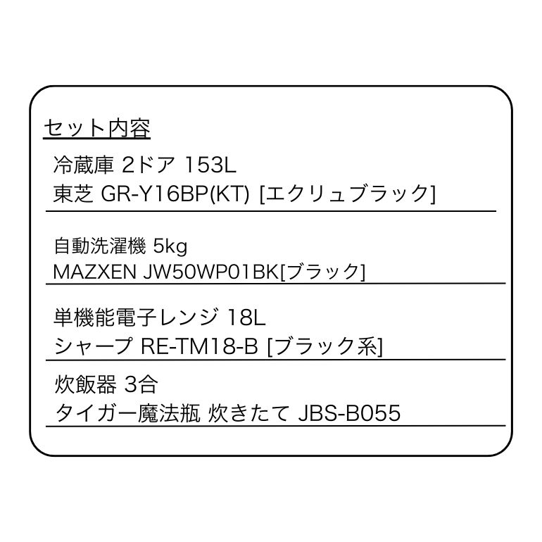 1人暮らし向け黒色家電4点セット