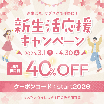 新生活応援キャンペーン ~2026.4.30(木)まで 初月利用料40%OFF おひとり様につき1回のみ使用可能