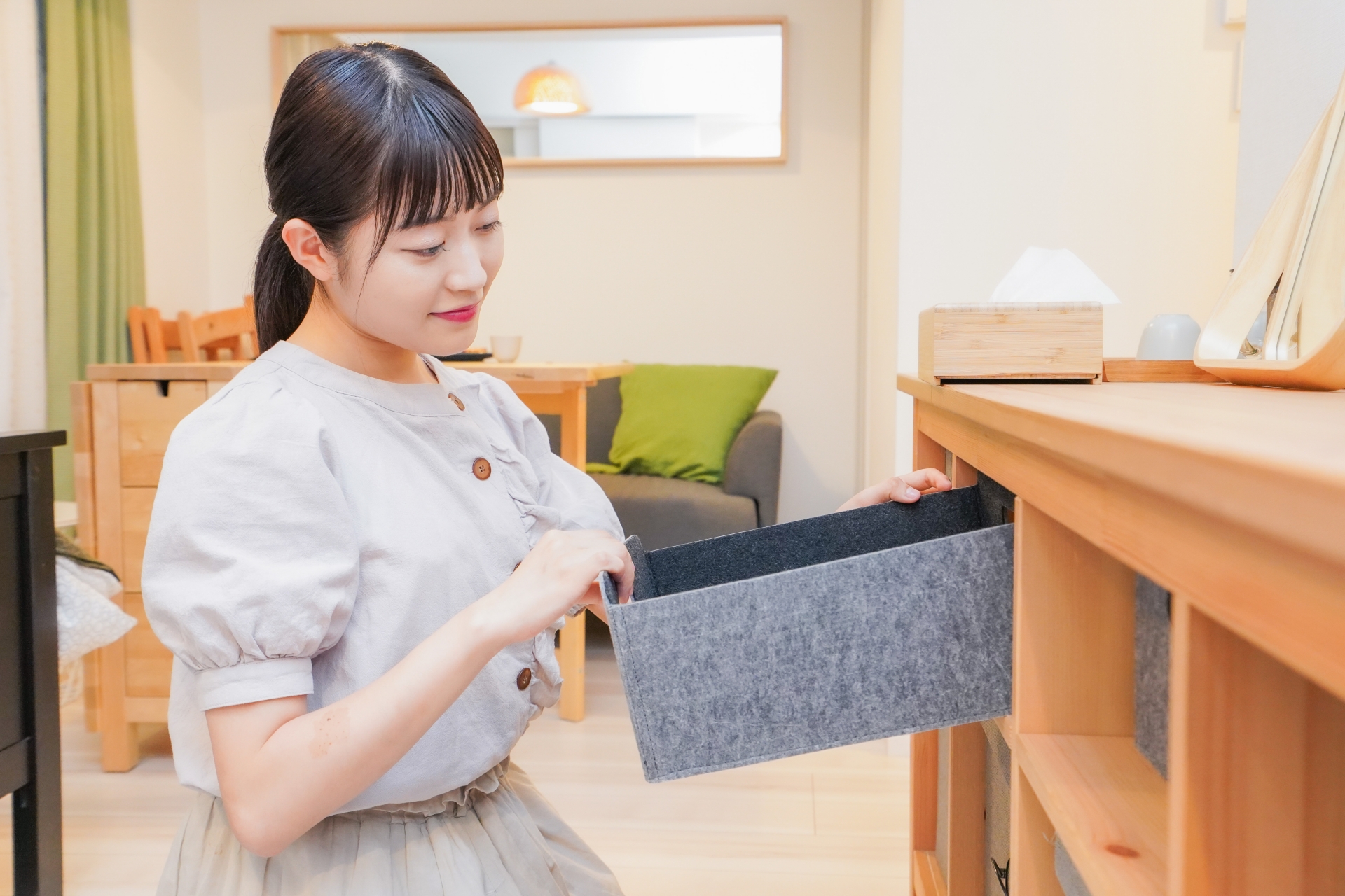 「戻しやすい場所」に「ちょっとオシャレな収納」を置いておくだけで、習慣になりやすくなります。